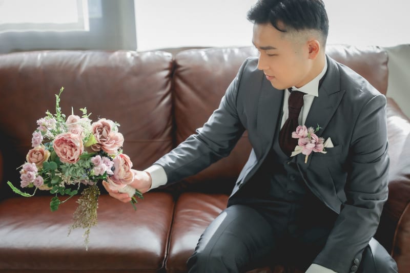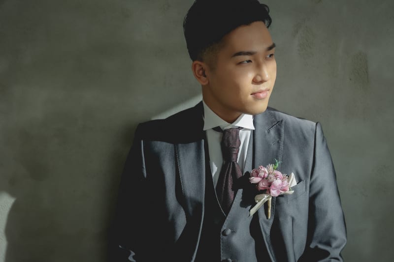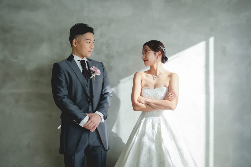 新婦さんの可愛らしい感じとチェンジして、新郎さんはクールな感じに