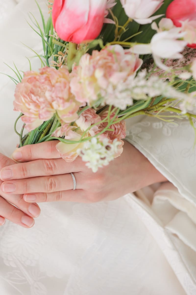 白背景がある隣のスタジオへ移動!シンプルな背景にブーケを持ち、雰囲気を変えてみました。