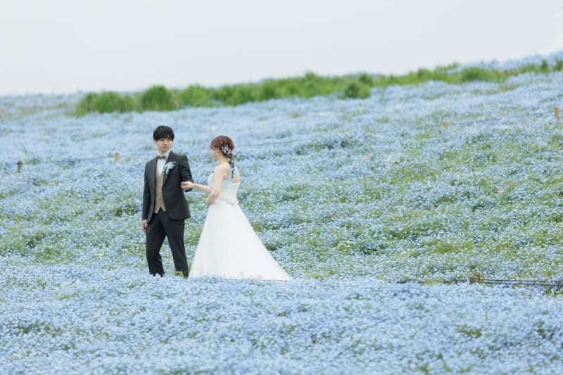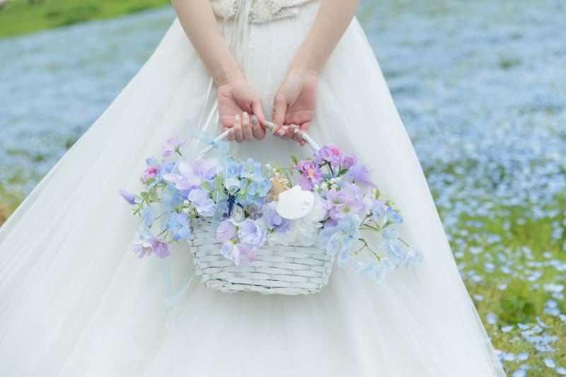この日のご新婦様は、髪飾りもしっかりネモフィラ仕様で青で揃えてきてくださいました。