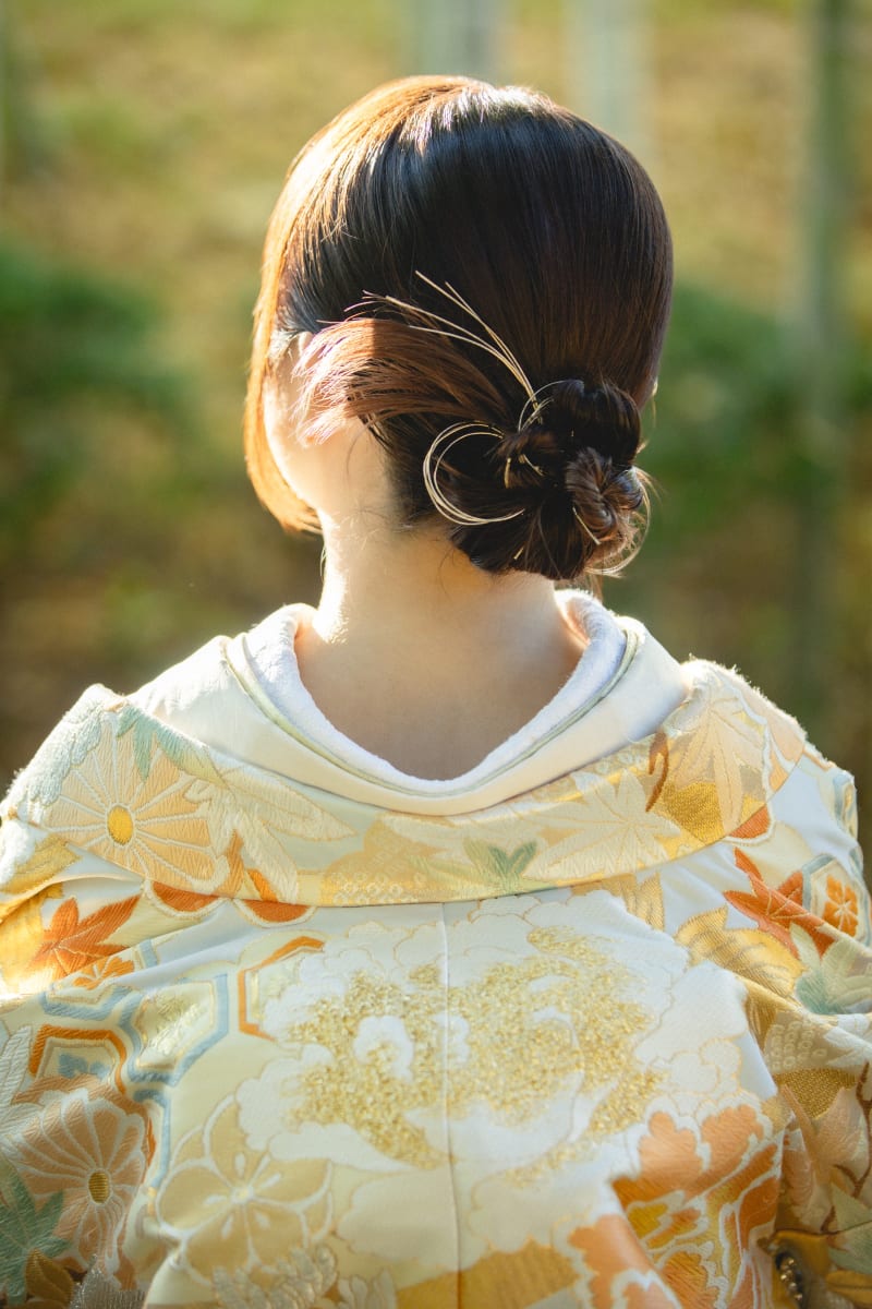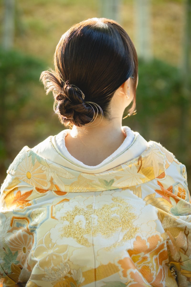 洋装は金箔をアクセントにしたタイトめな編み下ろしスタイル