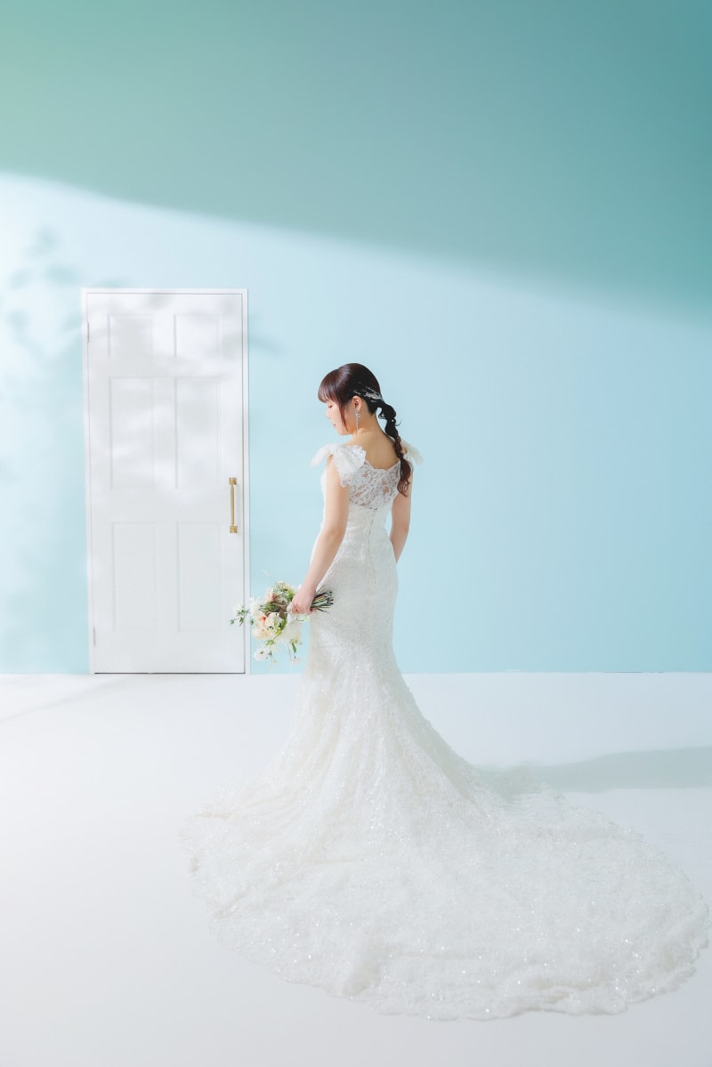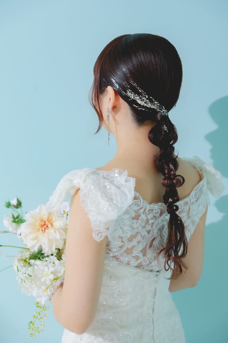 ドレスの背中のデザインを邪魔せず、華やかな印象になります!