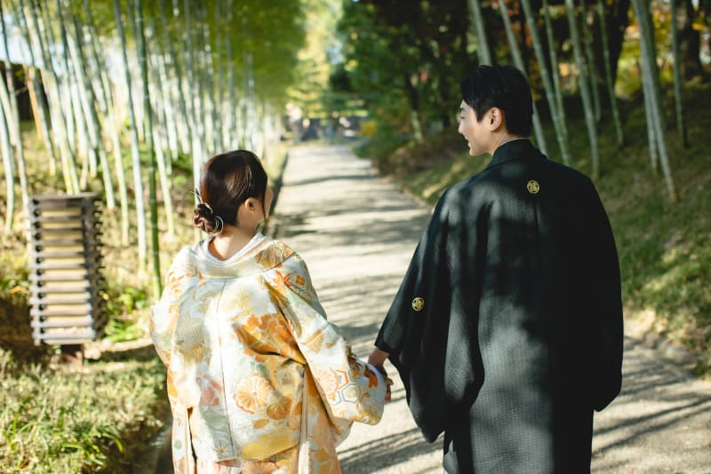 〈 和装 〉ご来店回数 2 回(オンライン相談会の場合は1回) 撮影相談会 → 撮影当日 (衣装選びは撮影当日に行います) → 商品の発送