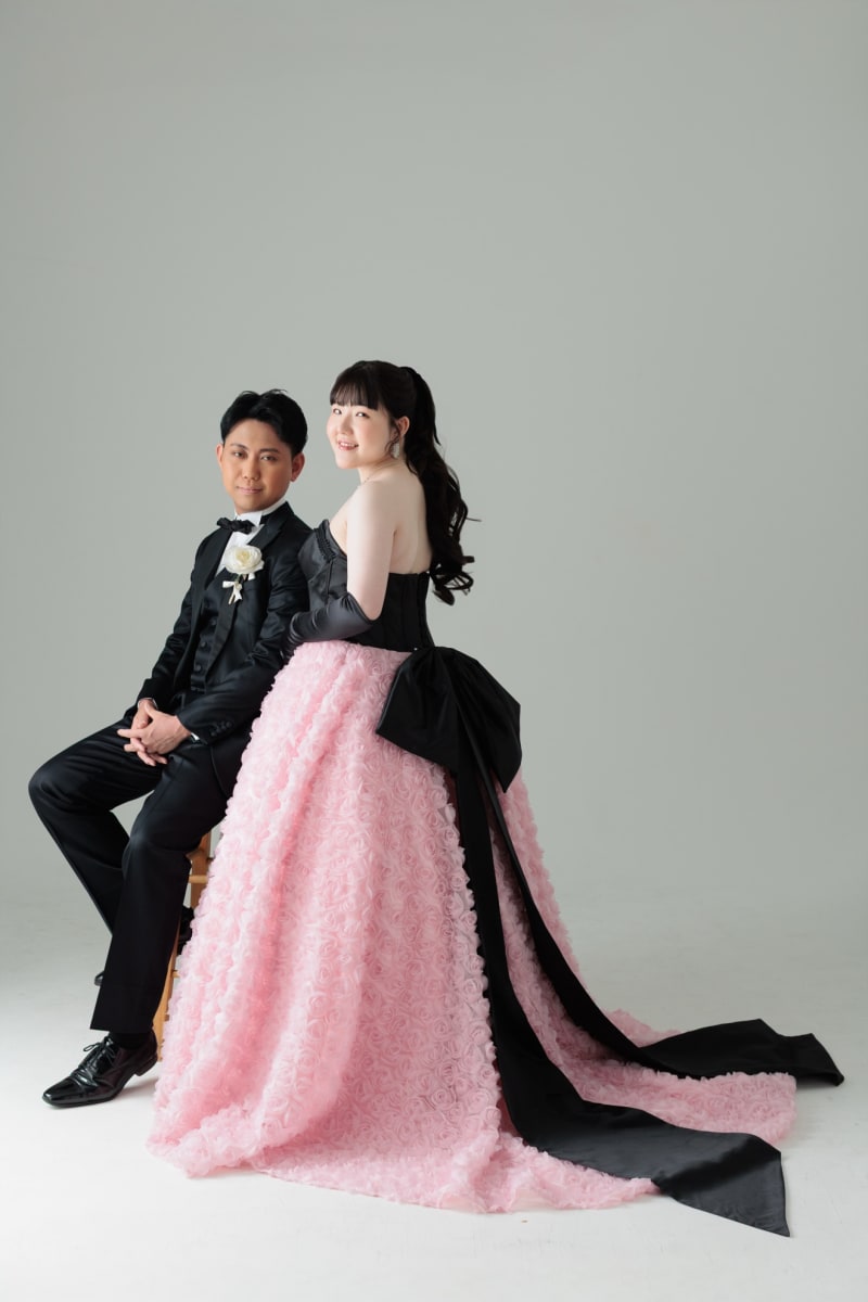 最初はカラードレスでシンプルにスタジオで。