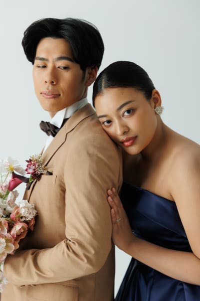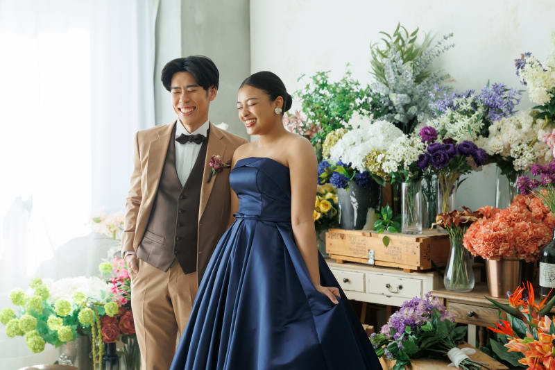 こちらのスタジオの魅力は、限られた時間の中でもさまざまな背景で撮影できること。一つのスタジオで雰囲気をガラッと変えながら、お二人らしいお写真をたくさん残すことができます。