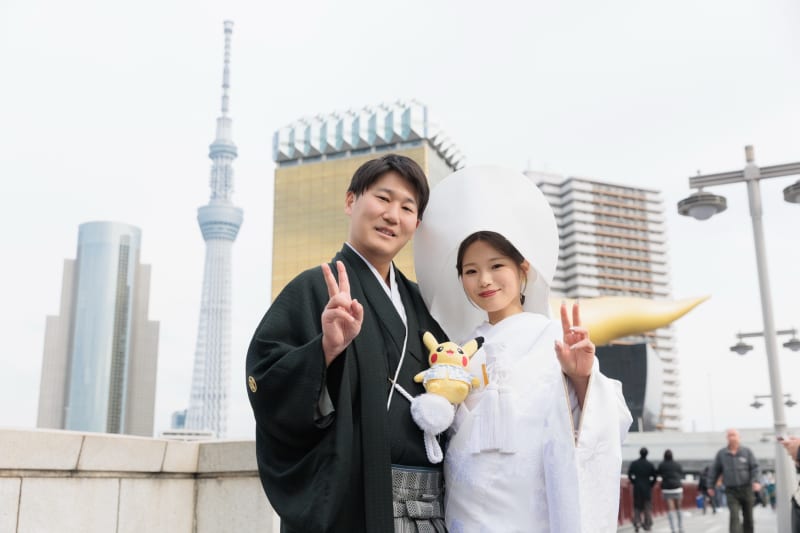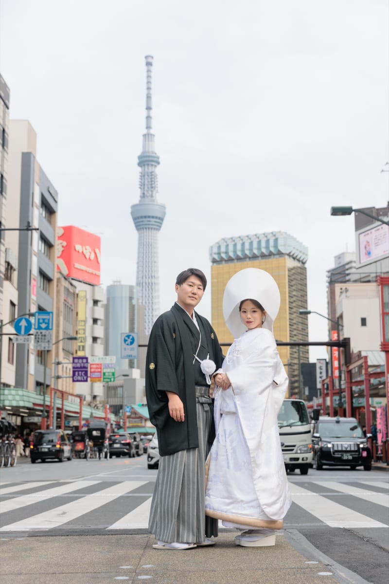 東京のシンボル・スカイツリーを背景に、おふたりの一枚から撮影がスタート。