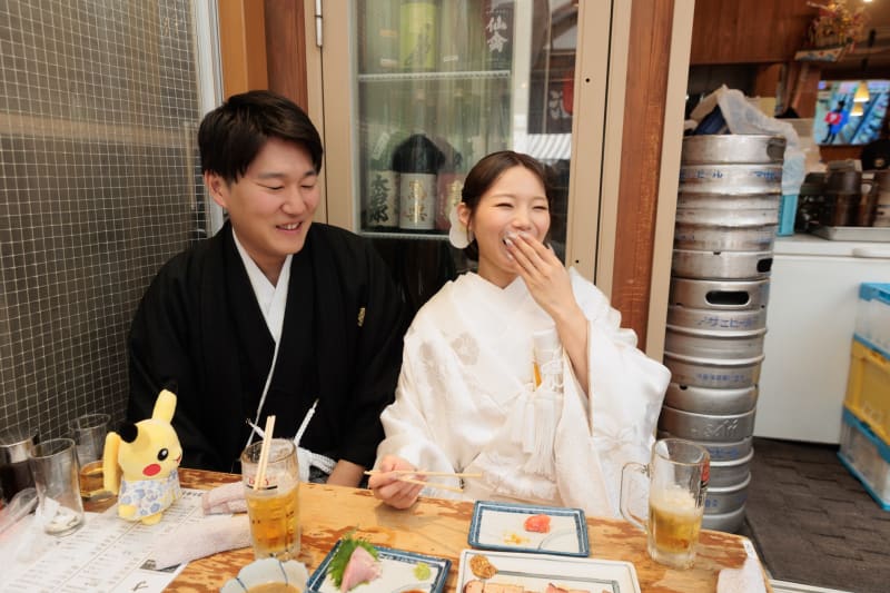 湯気まで伝わってきそうなこのカットが、店内のにぎやかで心地よい空気感をより引き立ててくれました。おふたりが過ごした時間のリアルさを感じられる、そんな一枚です。