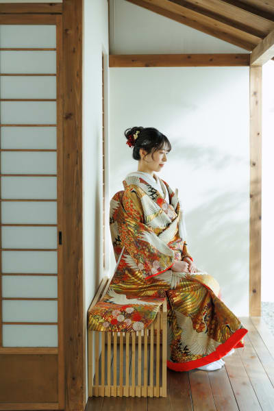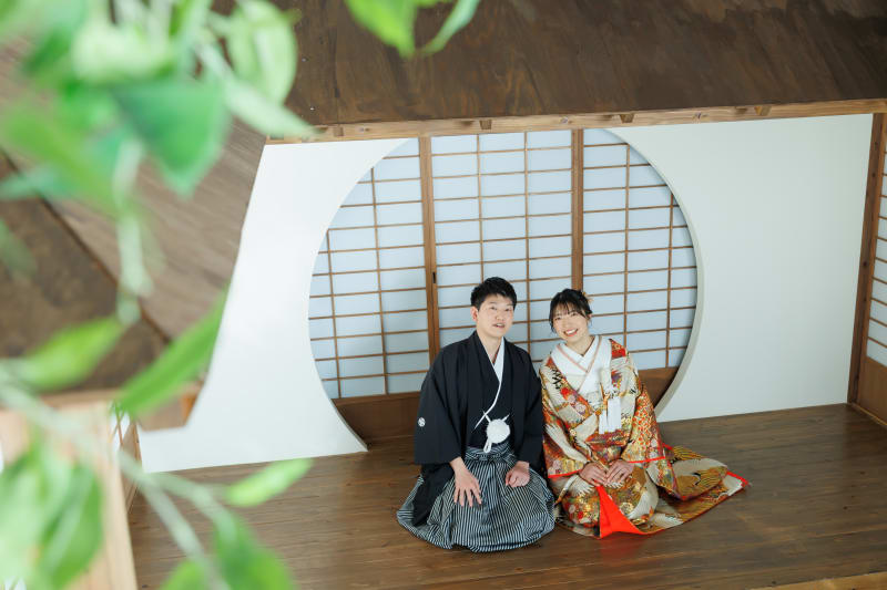 屋内庭園スタジオの魅力のひとつは、撮影する角度によって空間の見え方が大きく変わることです。切り取り方次第で広々とした印象を演出でき、1つのスタジオでもさまざまなバリエーションのお写真を残すことができます。