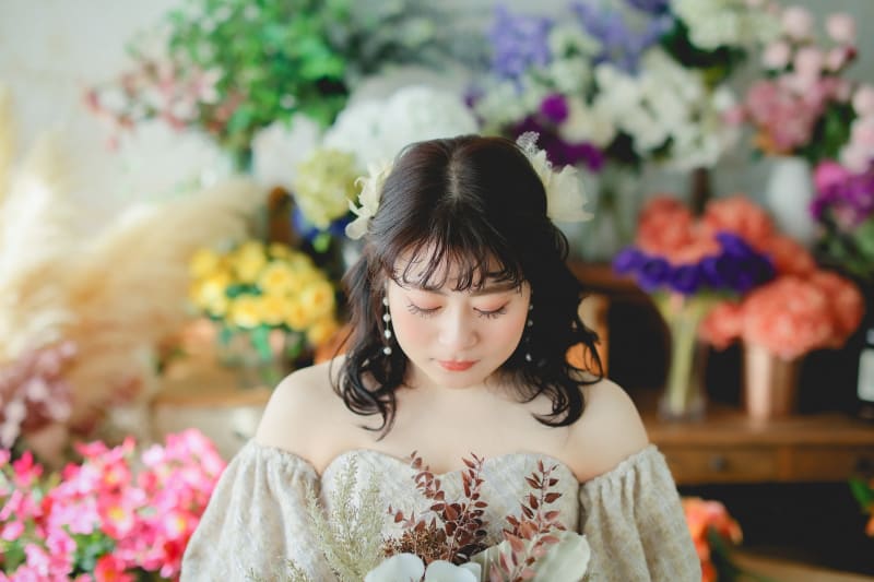 ヘアメイクは衣装に合わせて柔らかい雰囲気で仕上げました♡