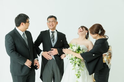 家族フォトプランでは、おふたりの撮影はもちろん、ご家族様とのお写真もたっぷり残していただけます。