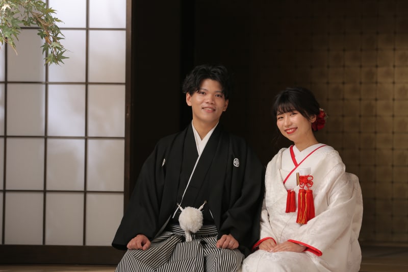 本格日本庭園を再現したスタジオで撮る 和装の結婚写真