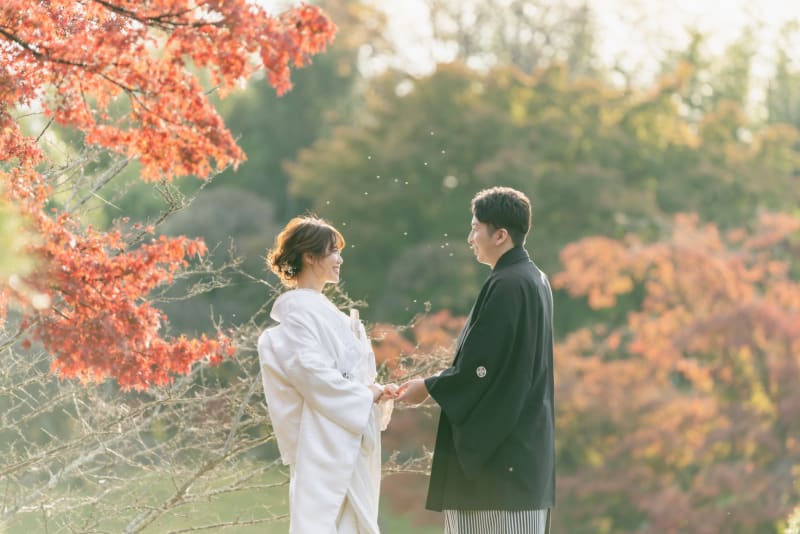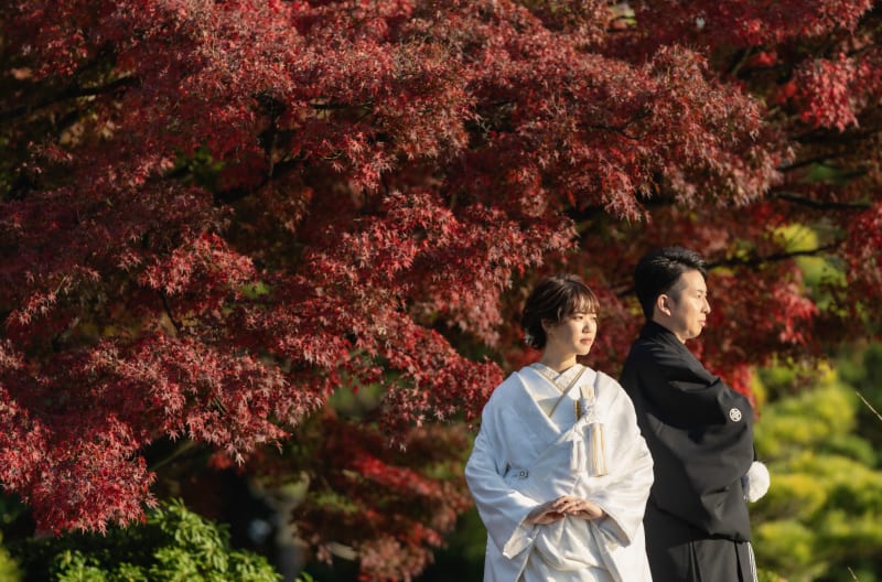 本格日本庭園を再現したスタジオで撮る 和装の結婚写真