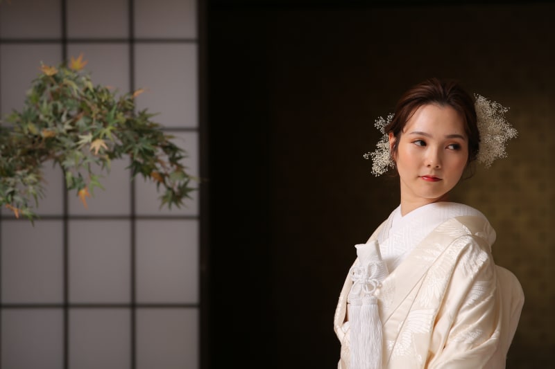 本格日本庭園を再現したスタジオで撮る 和装の結婚写真