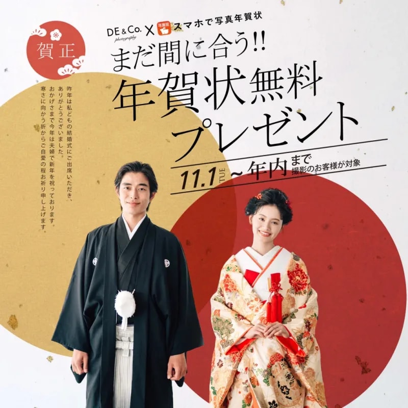 また、今なら12月中に撮影いただいたお客様に、年賀状20枚プレゼントキャンペーンを実施中です!
