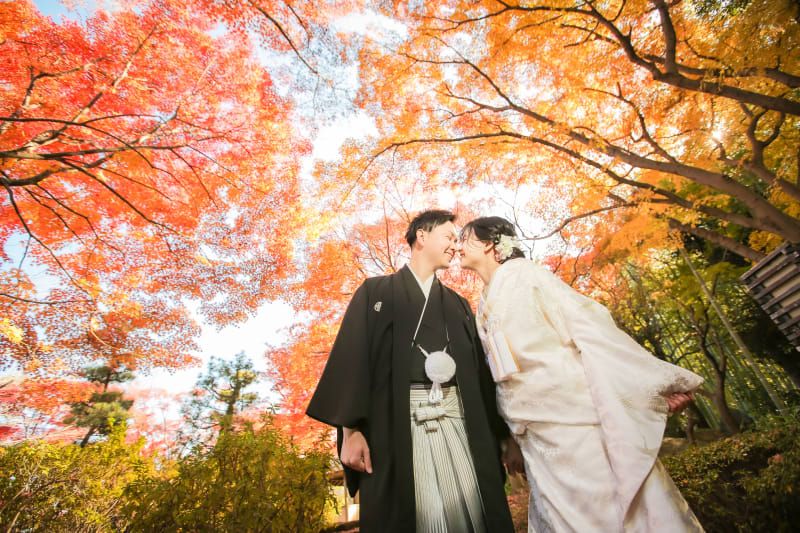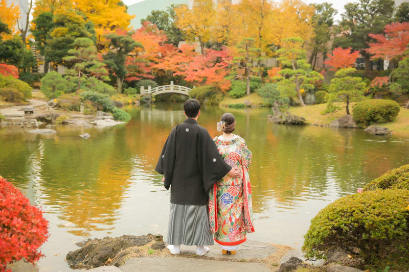 本格日本庭園を再現したスタジオで撮る 和装の結婚写真