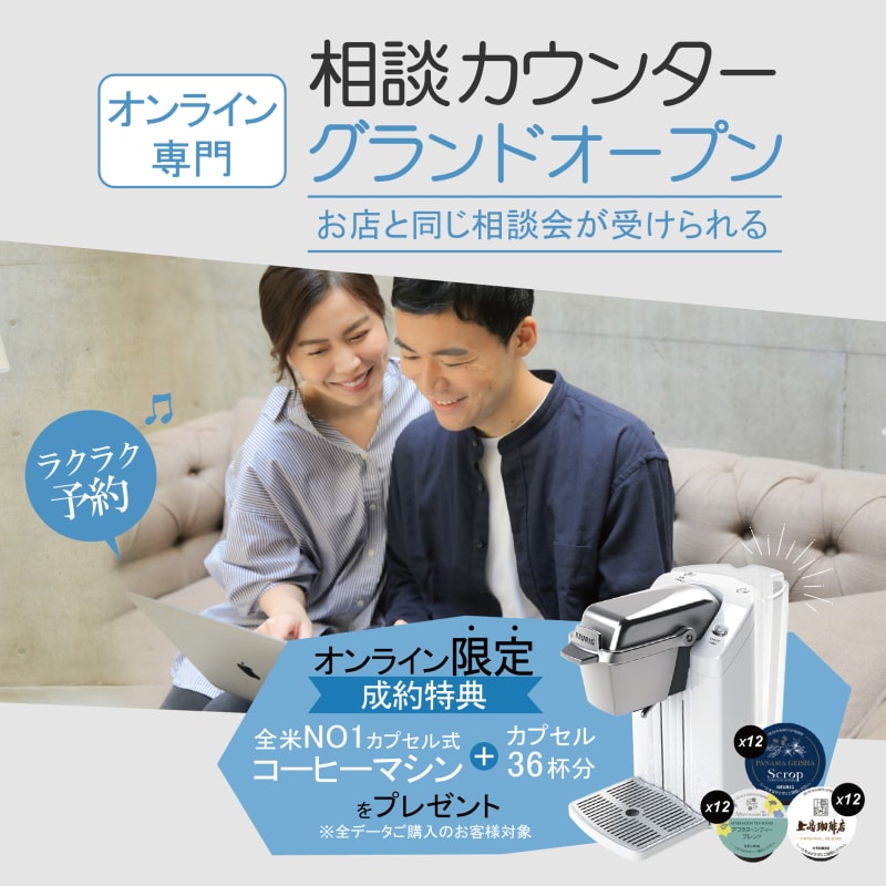 今ならオンラインご成約限定特典でコーヒーマシンをプレゼントさせて頂きます!
