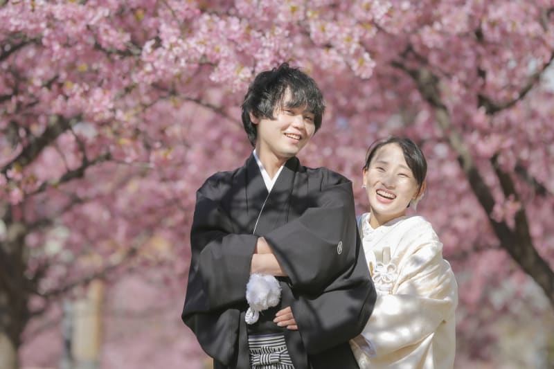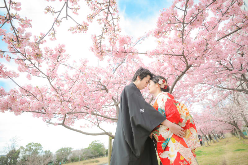 本格日本庭園を再現したスタジオで撮る 和装の結婚写真