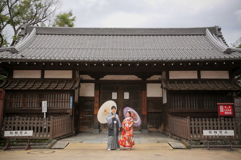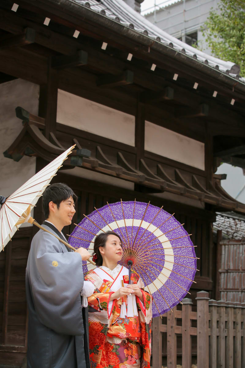 本格日本庭園を再現したスタジオで撮る 和装の結婚写真