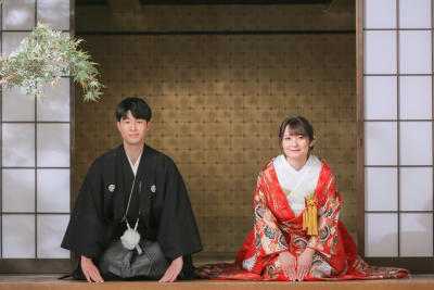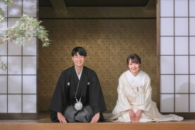 本格日本庭園を再現したスタジオで撮る 和装の結婚写真
