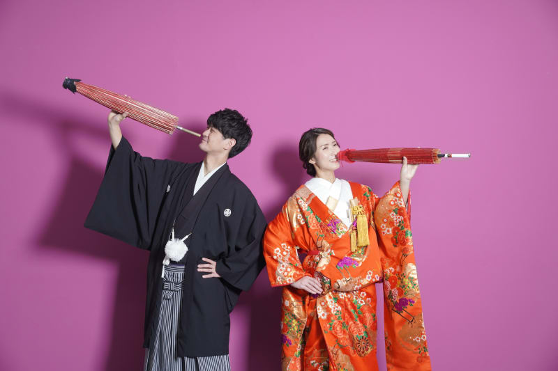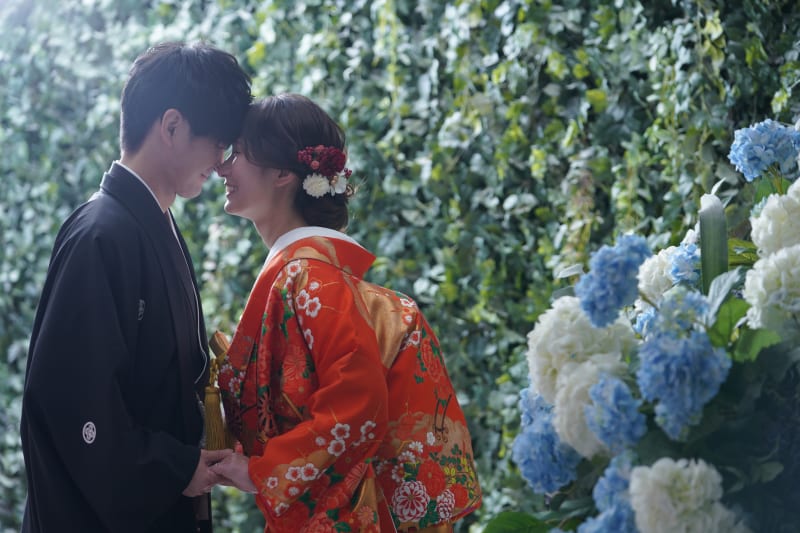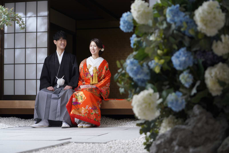 本格日本庭園を再現したスタジオで撮る 和装の結婚写真