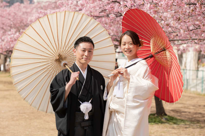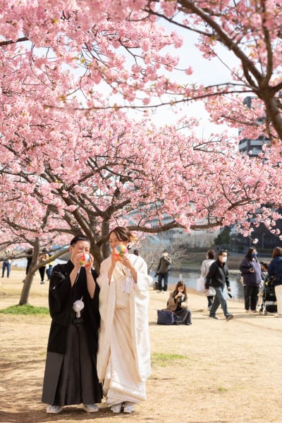 本格日本庭園を再現したスタジオで撮る 和装の結婚写真