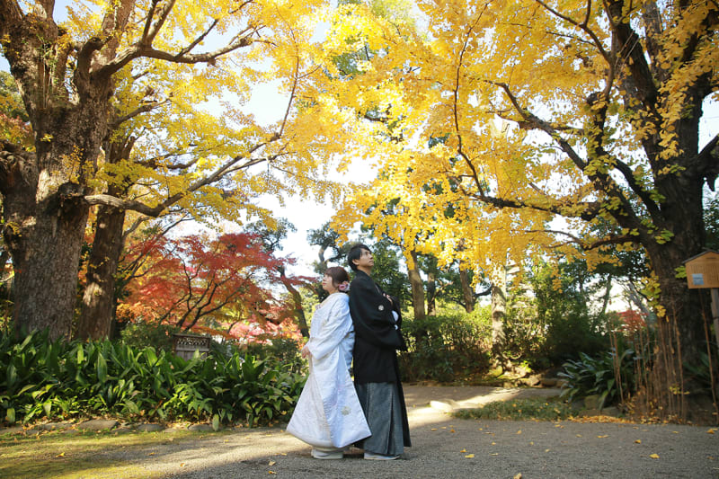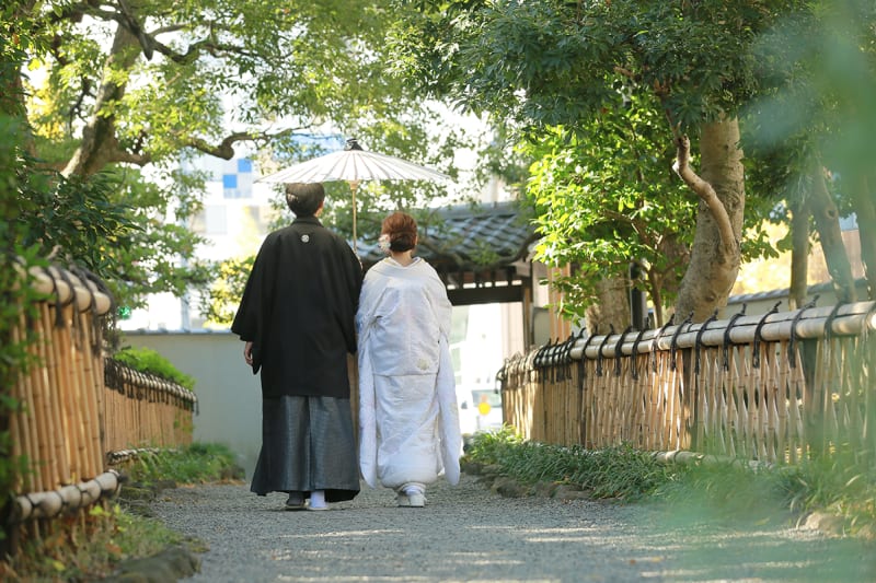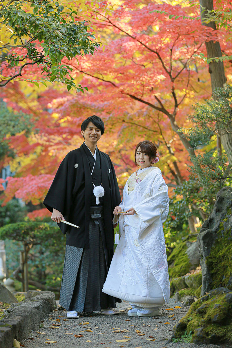 本格日本庭園を再現したスタジオで撮る 和装の結婚写真