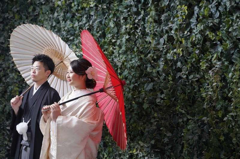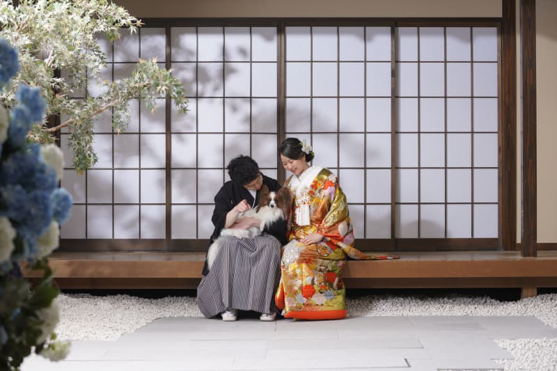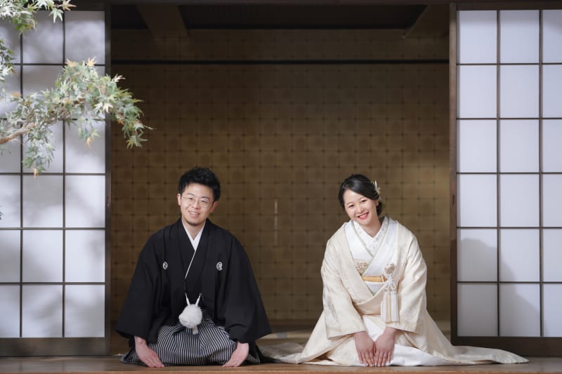 本格日本庭園を再現したスタジオで撮る 和装の結婚写真