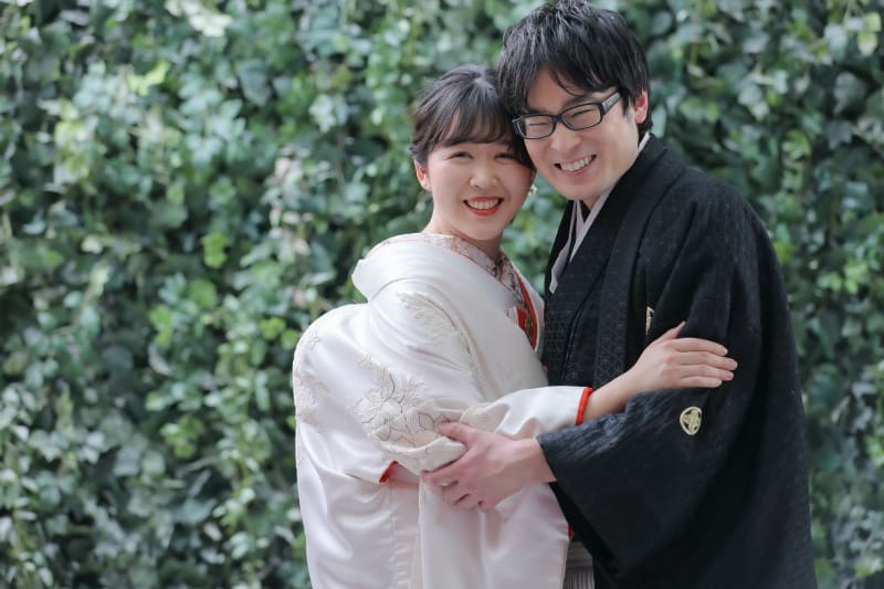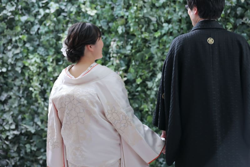 ご新郎様は黒紋付にグラデーションの袴