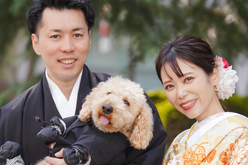 本格日本庭園を再現したスタジオで撮る 和装の結婚写真