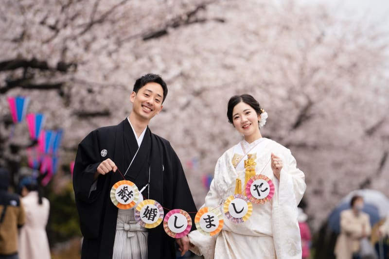 本格日本庭園を再現したスタジオで撮る 和装の結婚写真