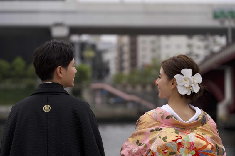 本格日本庭園を再現したスタジオで撮る 和装の結婚写真
