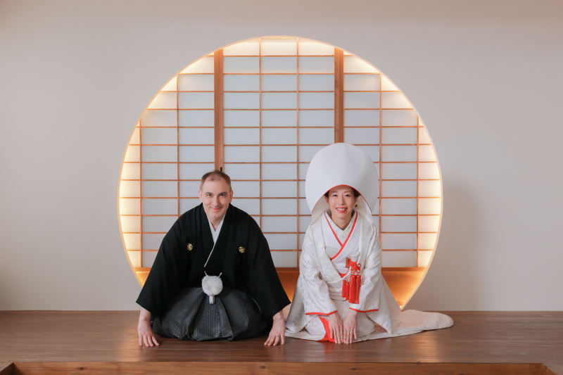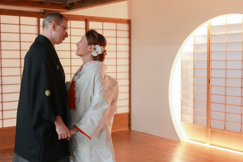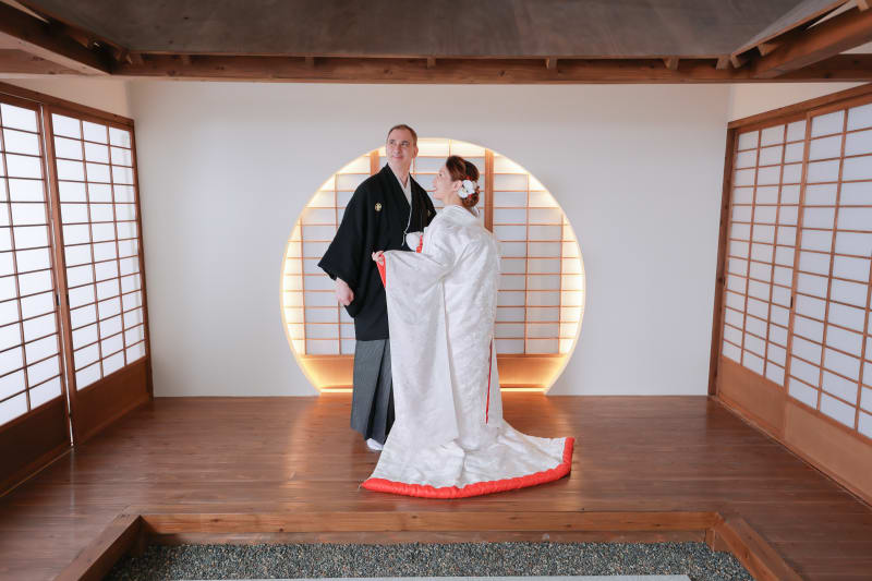 本格日本庭園を再現したスタジオで撮る 和装の結婚写真