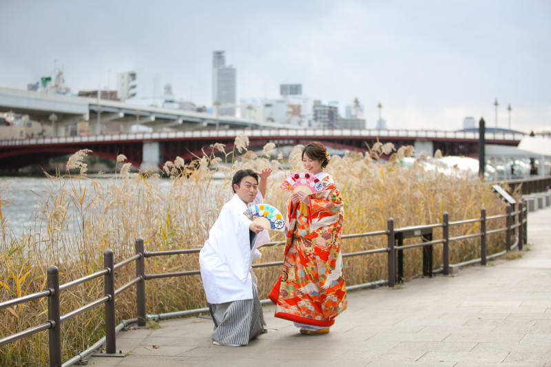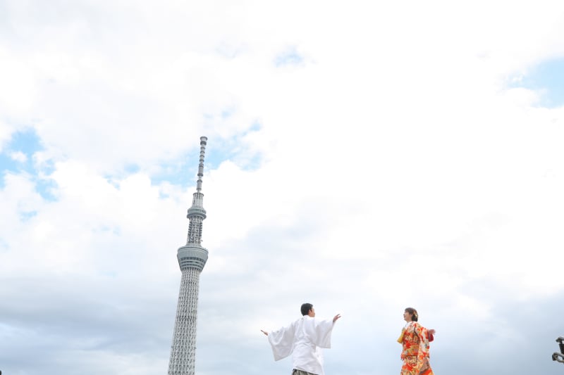 そしてこちらはスカイツリーと共にご新婦様がご新郎様からひょっこり!