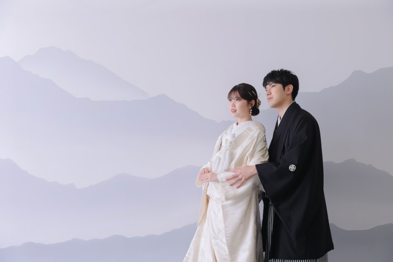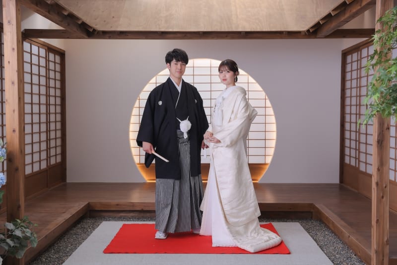 本格日本庭園を再現したスタジオで撮る 和装の結婚写真