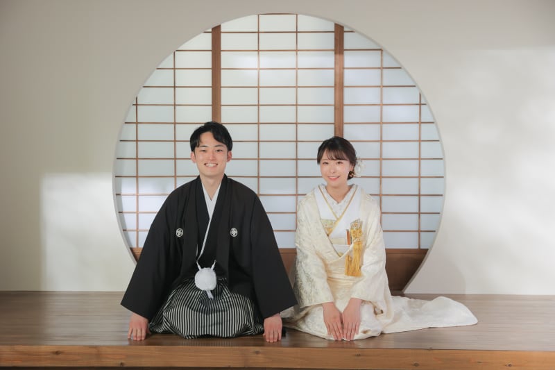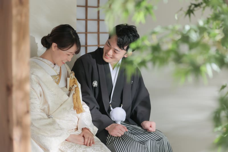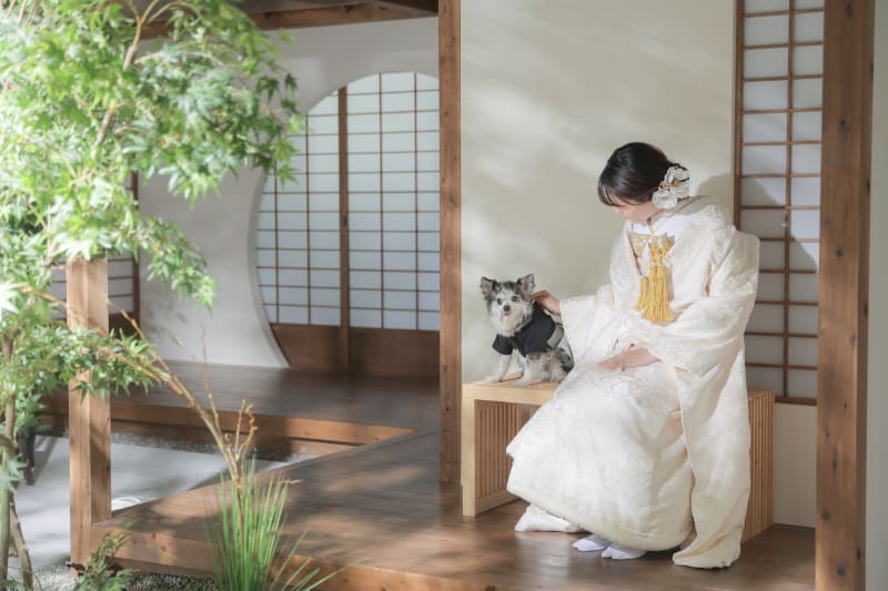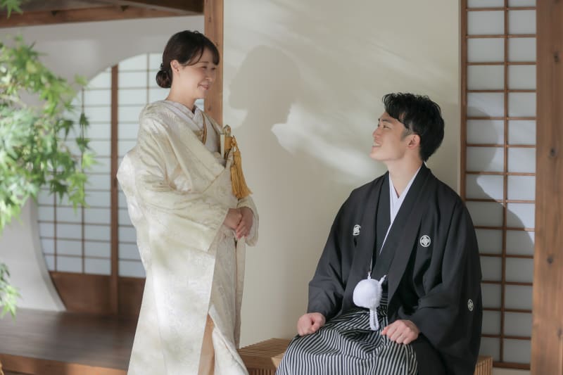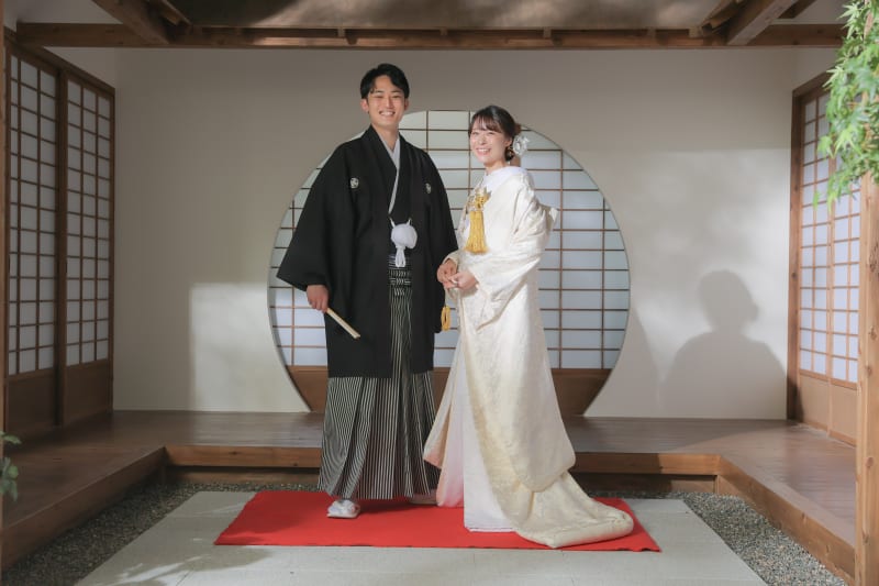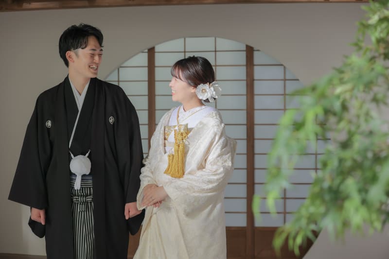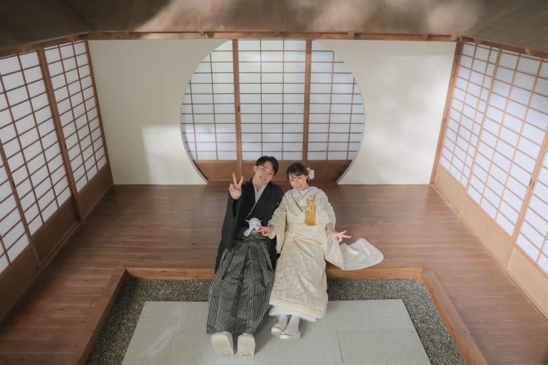 本格日本庭園を再現したスタジオで撮る 和装の結婚写真