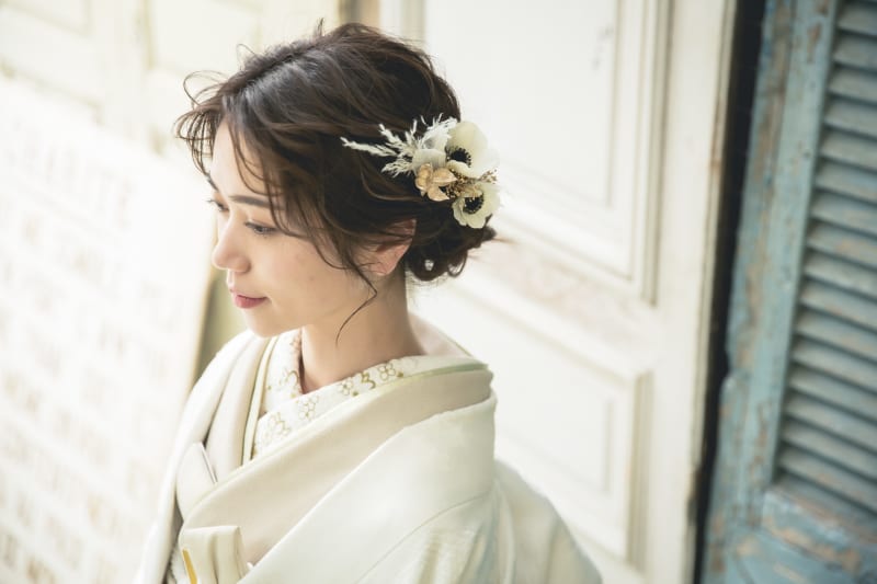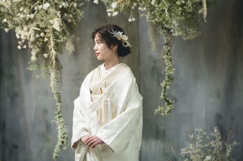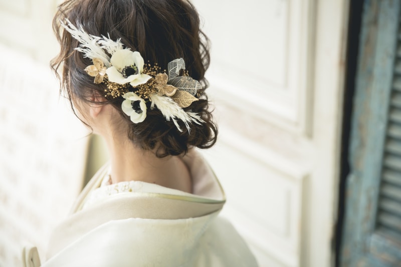 今回は、白無垢にドライフラワーのヘッドアクセサリーを合わせたコーディネートをご紹介させていただきます!