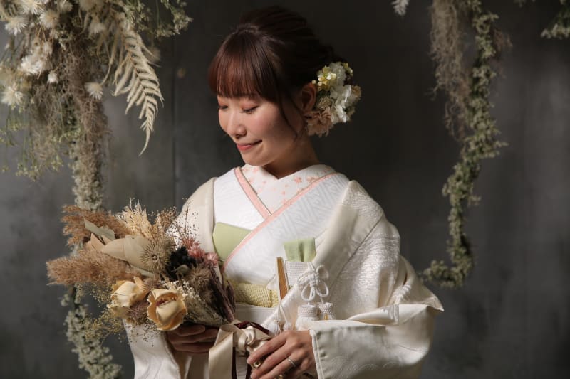 本格日本庭園を再現したスタジオで撮る 和装の結婚写真