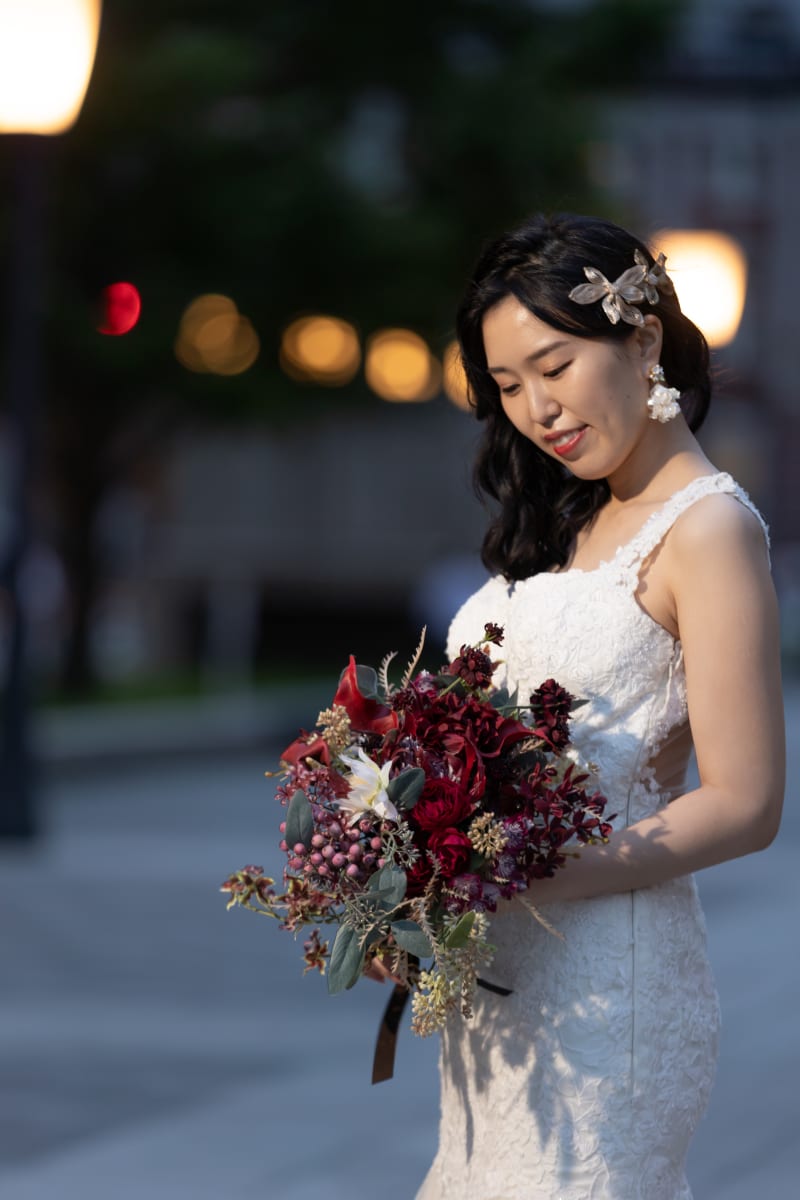 マーメイドドレスの落ち着いた雰囲気に合わせた