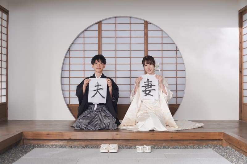 本格日本庭園を再現したスタジオで撮る 和装の結婚写真