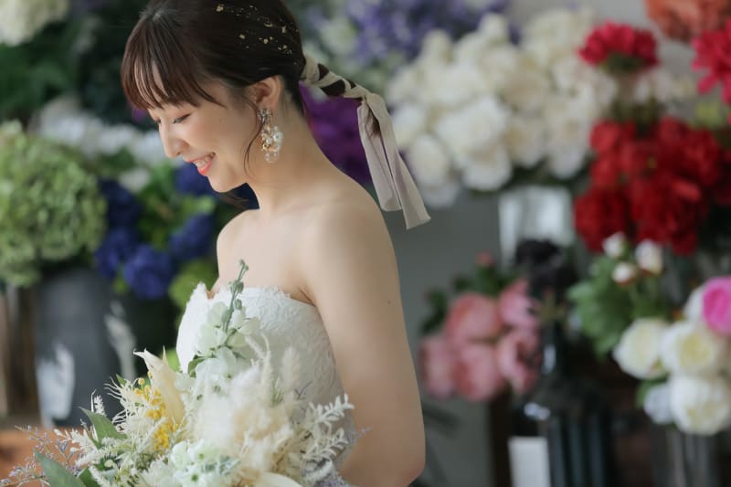 ヘアスタイルもご新婦様は肩につくぐらいの長さですが