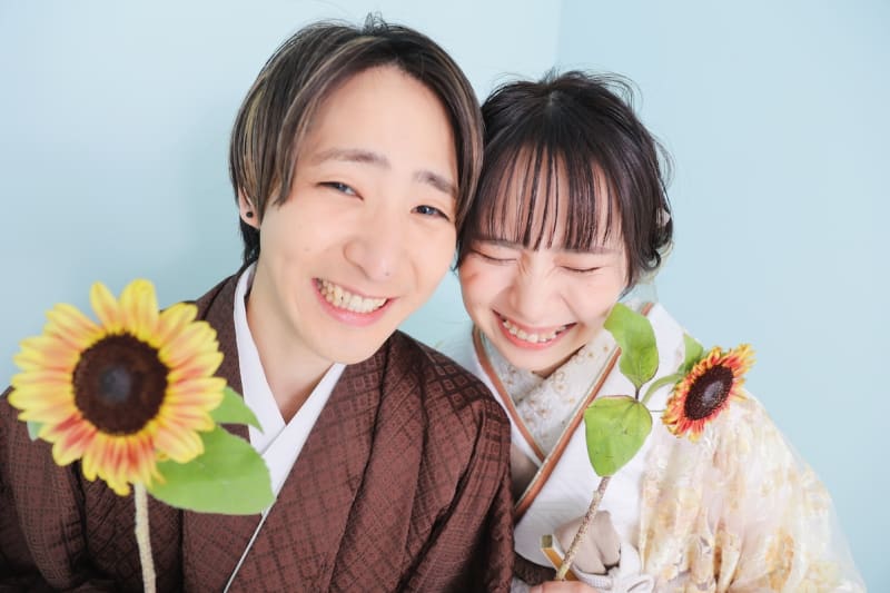 今日は和装のご撮影で、素敵な生花をお持ちいただいたお二人をご紹介します。