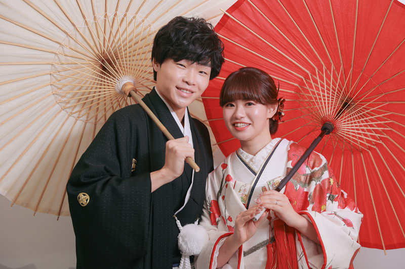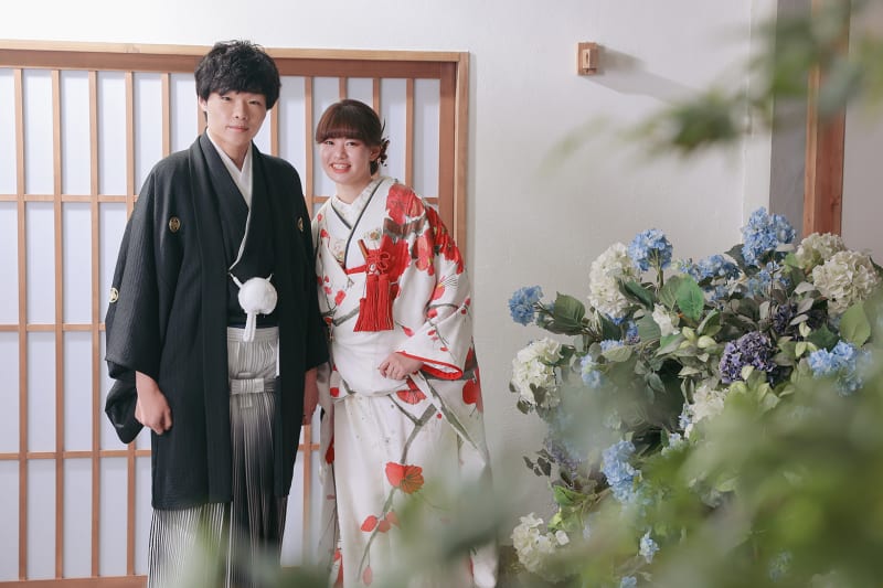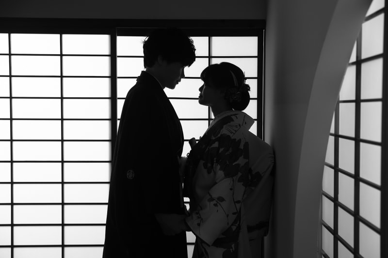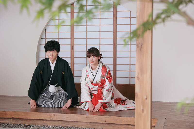 本格日本庭園を再現したスタジオで撮る 和装の結婚写真