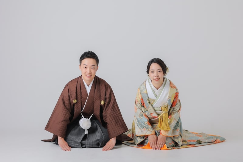 本格日本庭園を再現したスタジオで撮る 和装の結婚写真