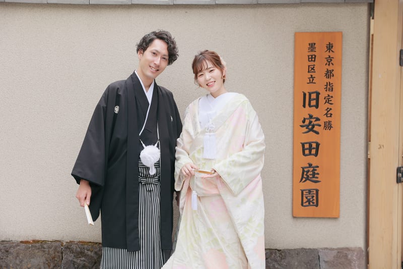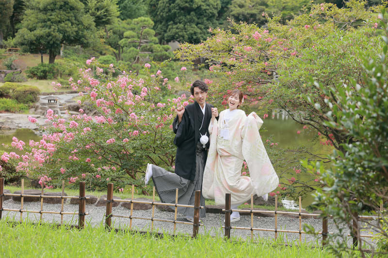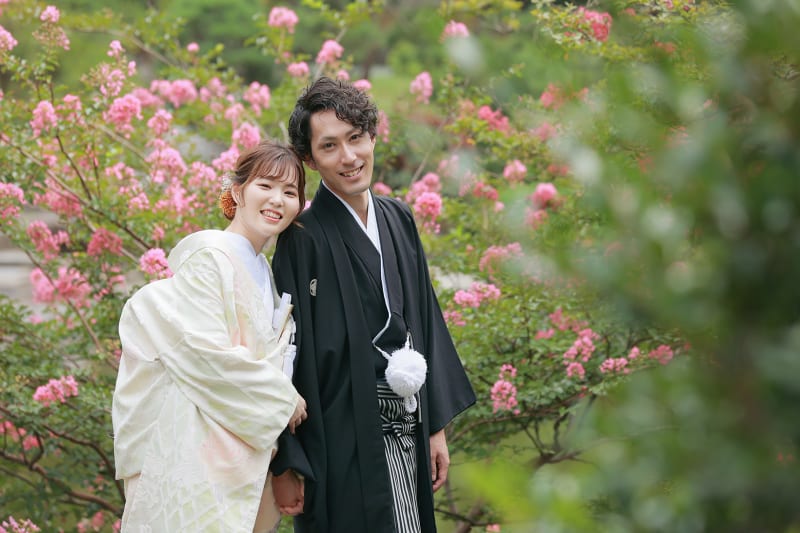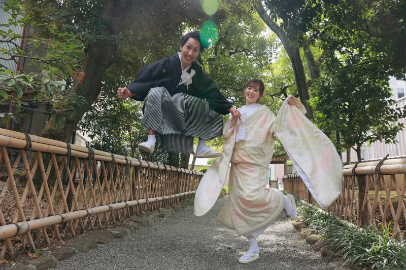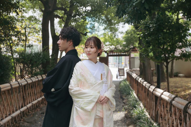 本格日本庭園を再現したスタジオで撮る 和装の結婚写真