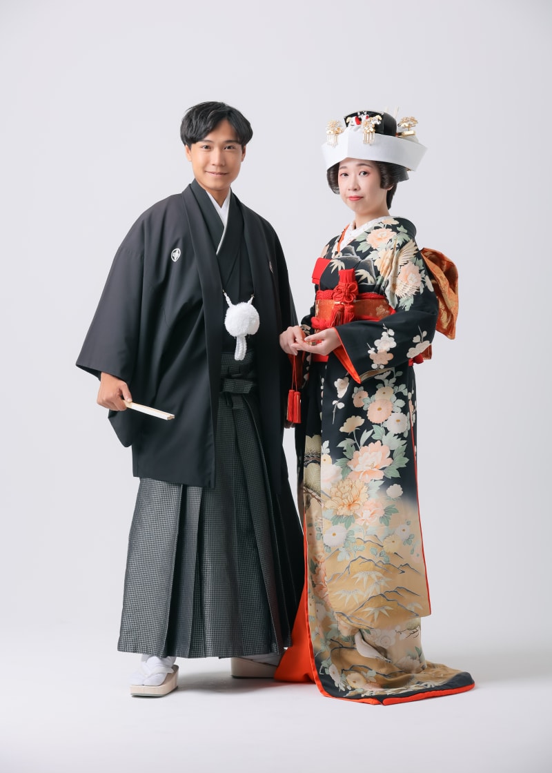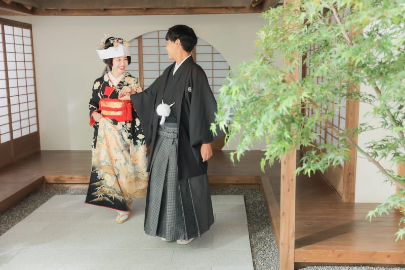 本格日本庭園を再現したスタジオで撮る 和装の結婚写真