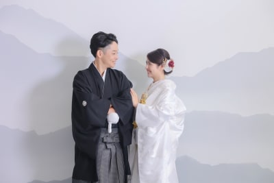 本格日本庭園を再現したスタジオで撮る 和装の結婚写真