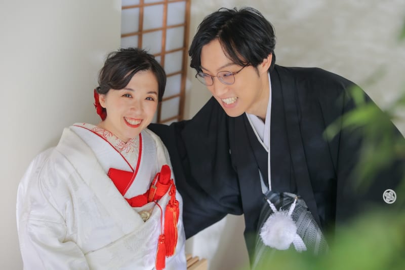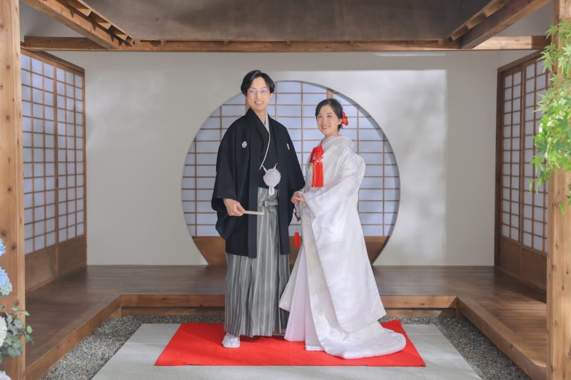 本格日本庭園を再現したスタジオで撮る 和装の結婚写真