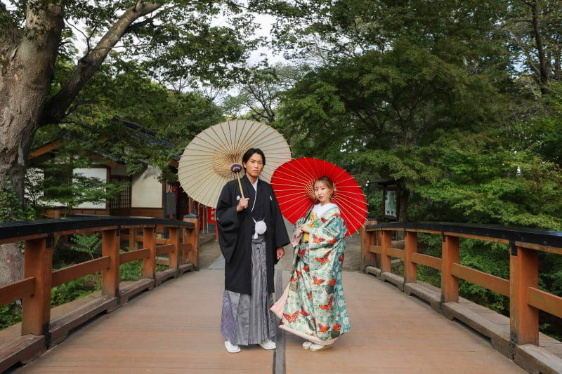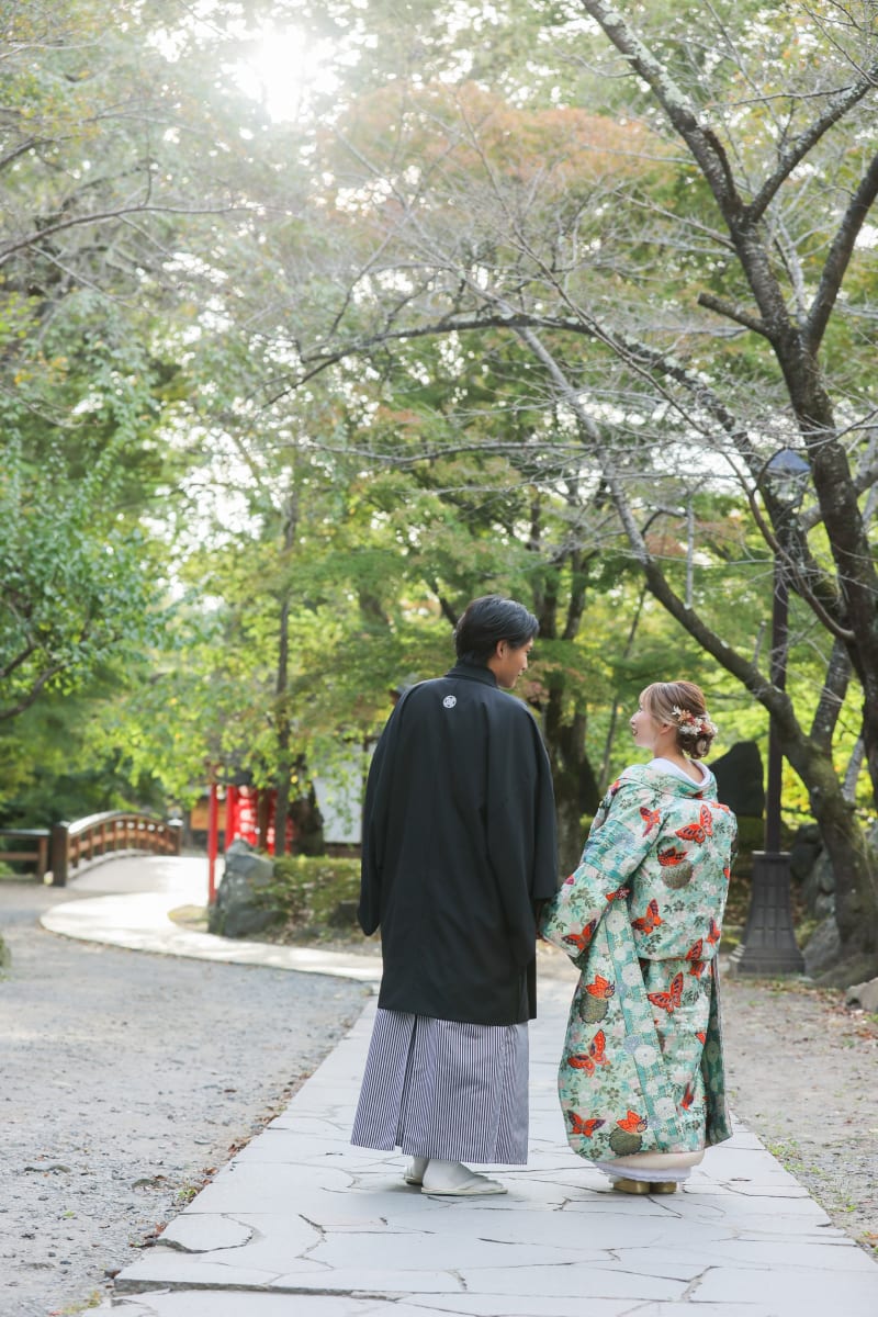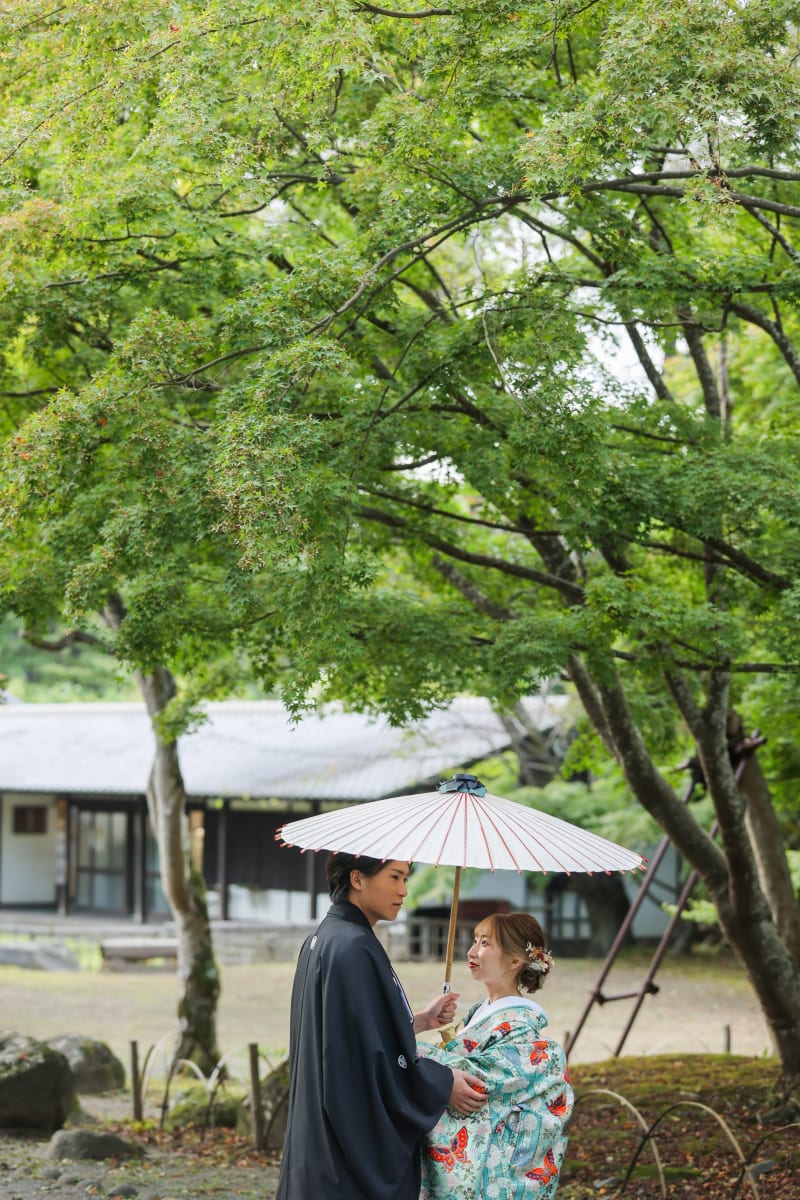 本格日本庭園を再現したスタジオで撮る 和装の結婚写真