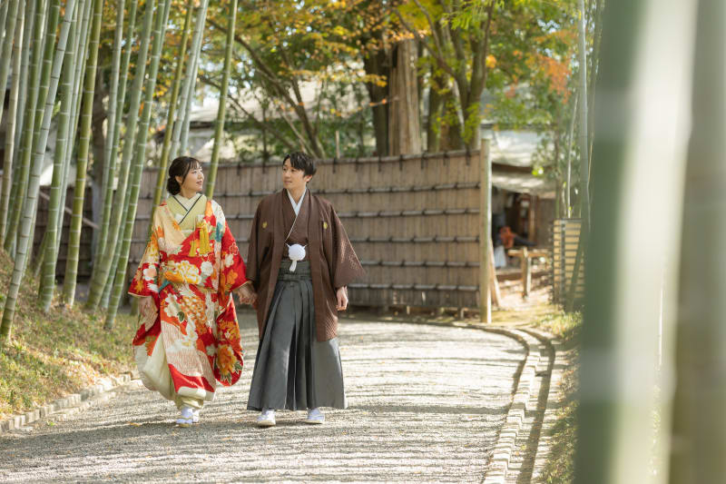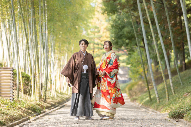 入ってすぐの竹林の通りは実際に見ると迫力があり、和装撮影にぴったりです!