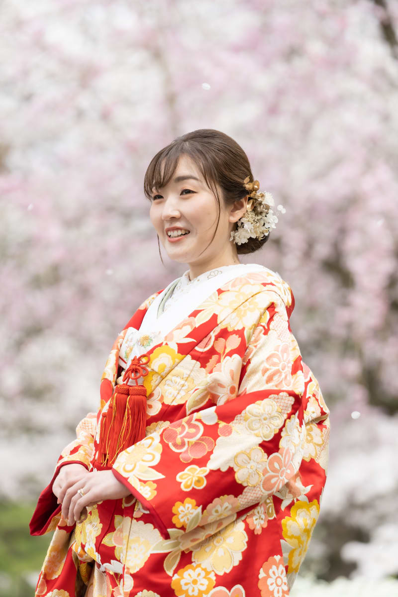 ご新婦様のソロショット!桜もヒラヒラ🌸