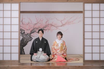 今回は、屋内庭園スタジオで色打掛と白無垢1着ずつお召しいただいたお写真をご紹介いたします! 屋内庭園スタジオには、宮大工さん監修のお茶室や、紅葉、竹林の背景など様々なお写真が撮影できます。 そのほかにも、桜や紫陽花などの小物を使って様々な季節のお写真を楽しむことができるのもスタジオ撮影のいいところです!